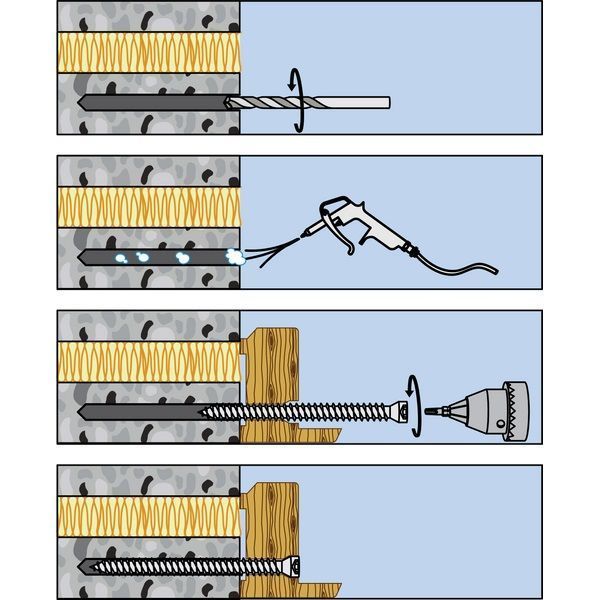 100 Vis béton Ø 7,5x182 mm Torx30 en acier conçues pour la fixation directe de cadres de portes et/ou fenêtres dans le béton.