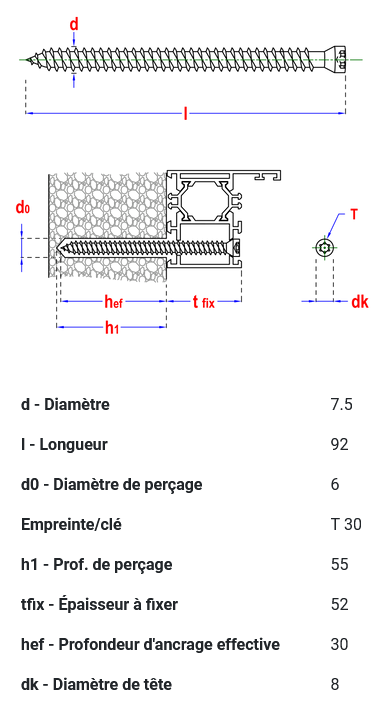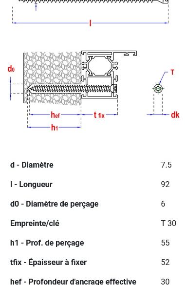 Vis pour châssis tête cylindrique Ø7,5x82 mm T30 SMART :