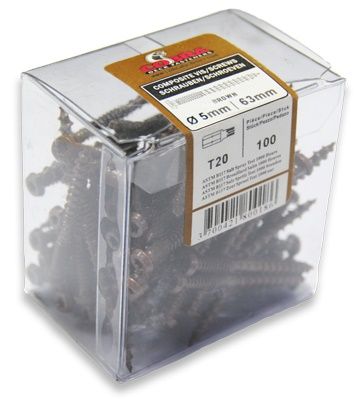 Vis spéciales pour lames de terrasse en bois composite brun Ø 5x63 mm.
