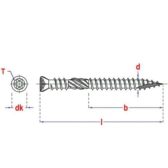 Vis double filet 5x70 mm en inox A4 pour bois exotique - Embout Torx 25 offert.